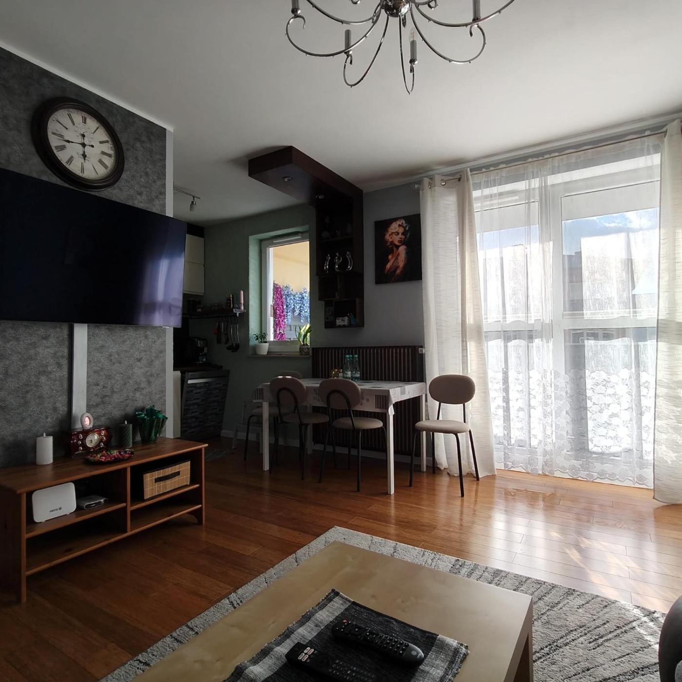 Apartament. Featuring a private entrance, this apartment is comprised of 1 living room, 1 separate bedroom and 1 bathroom with a bath and a shower. The well-equipped kitchenette has a stovetop, a refrigerator, a dishwasher and kitchenware. This apartment features a washing machine, soundproof walls, a flat-screen TV with streaming services and a terrace. The unit offers 3 beds. Apartament - 5 osobowy. Powierzchnia pokoju ok.: 47 mkw.