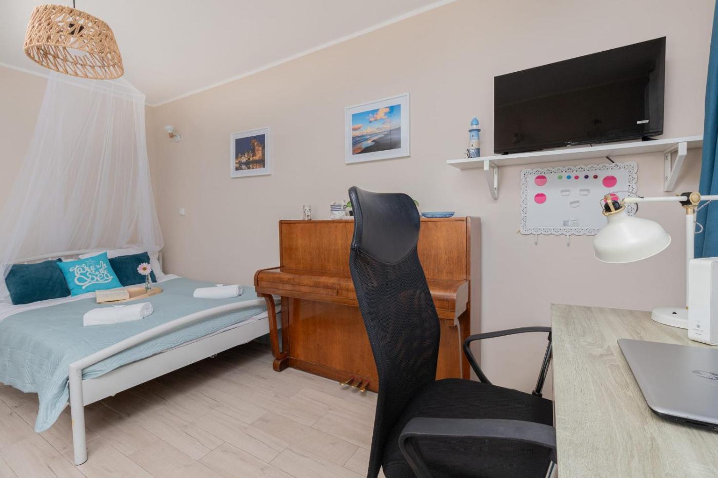 Apartament typu Deluxe. Boasting a private entrance, this apartment also comes with 2 bedrooms, a seating area and 1 bathroom with a bath and a hairdryer. Meals can be prepared in the well-fitted kitchen, which features a stovetop, a refrigerator, kitchenware and an oven. Featuring a balcony with ancourtyard view, this apartment also features a washing machine and a flat-screen TV. The unit has 3 beds. Apartament - 5 osobowy. Powierzchnia pokoju ok.: 38 mkw.